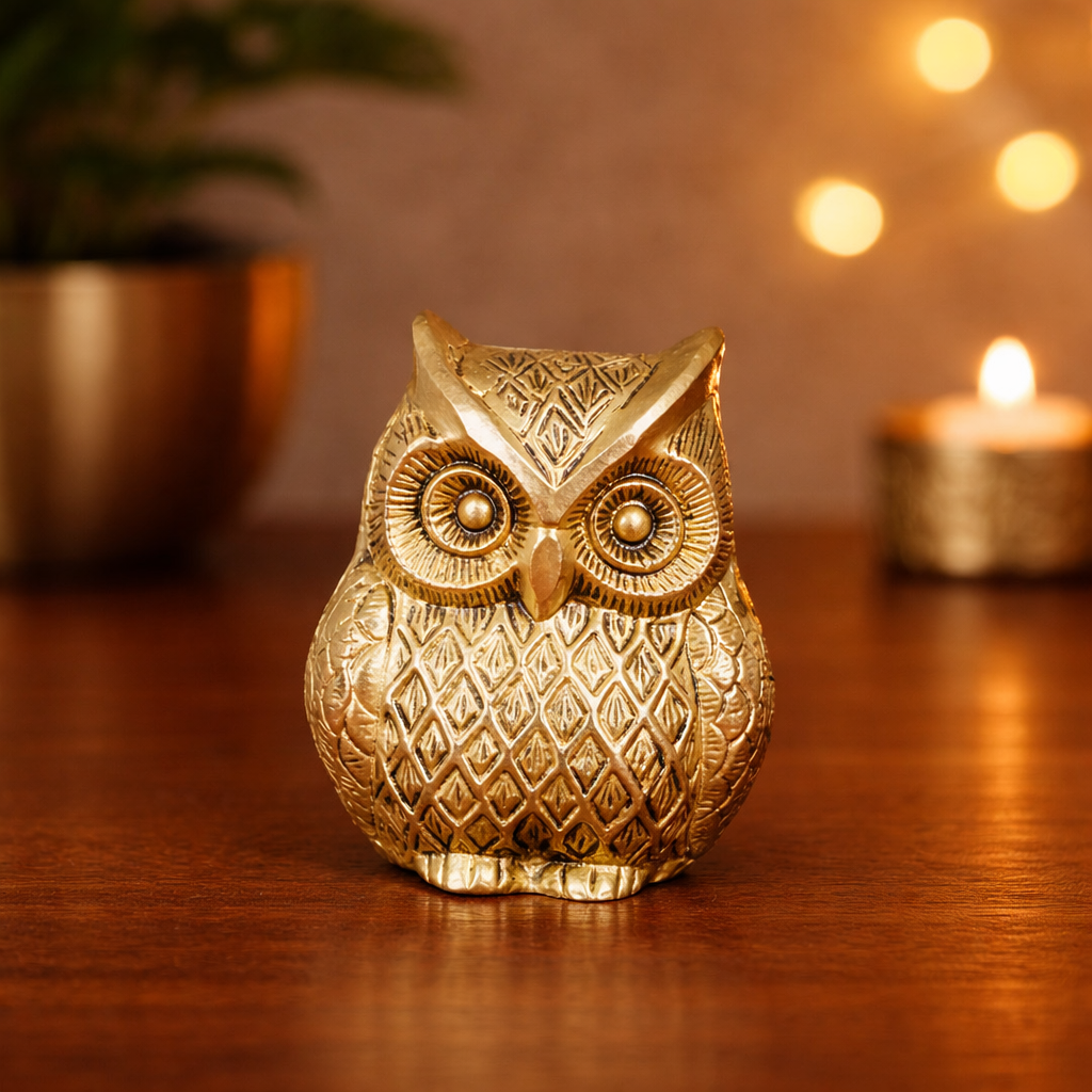 Crafted from pure brass, this elegant owl symbolizes wisdom and prosperity.