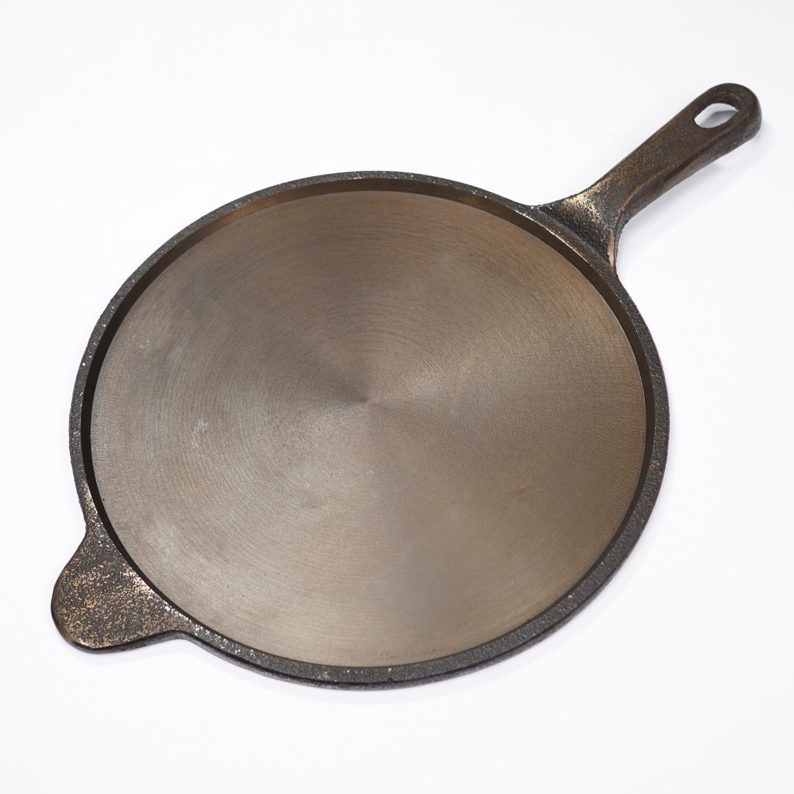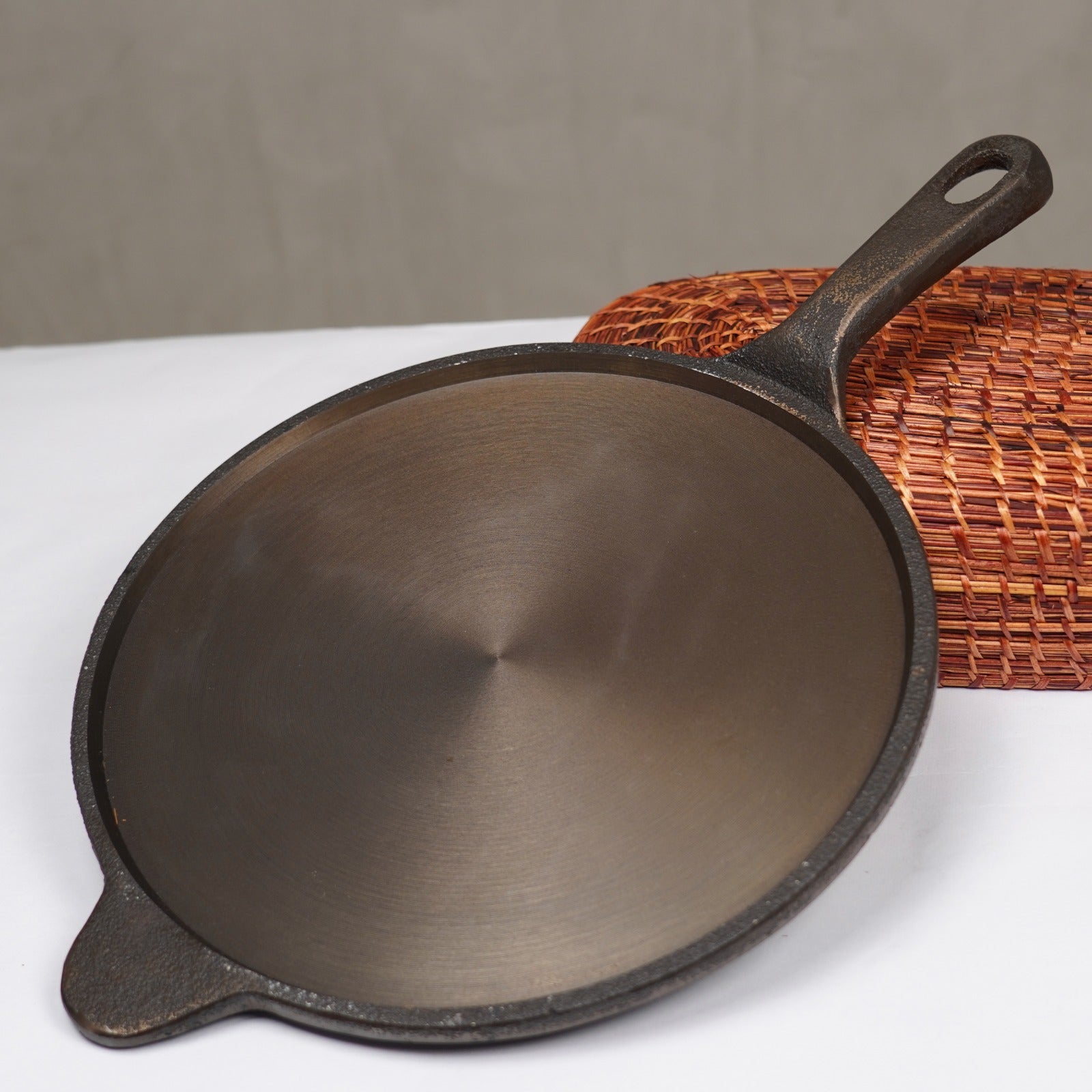 Handcrafted from pure cast iron, this traditional flat tawa with a sturdy handle is perfect for everyday cooking — from soft rotis to crispy dosas.