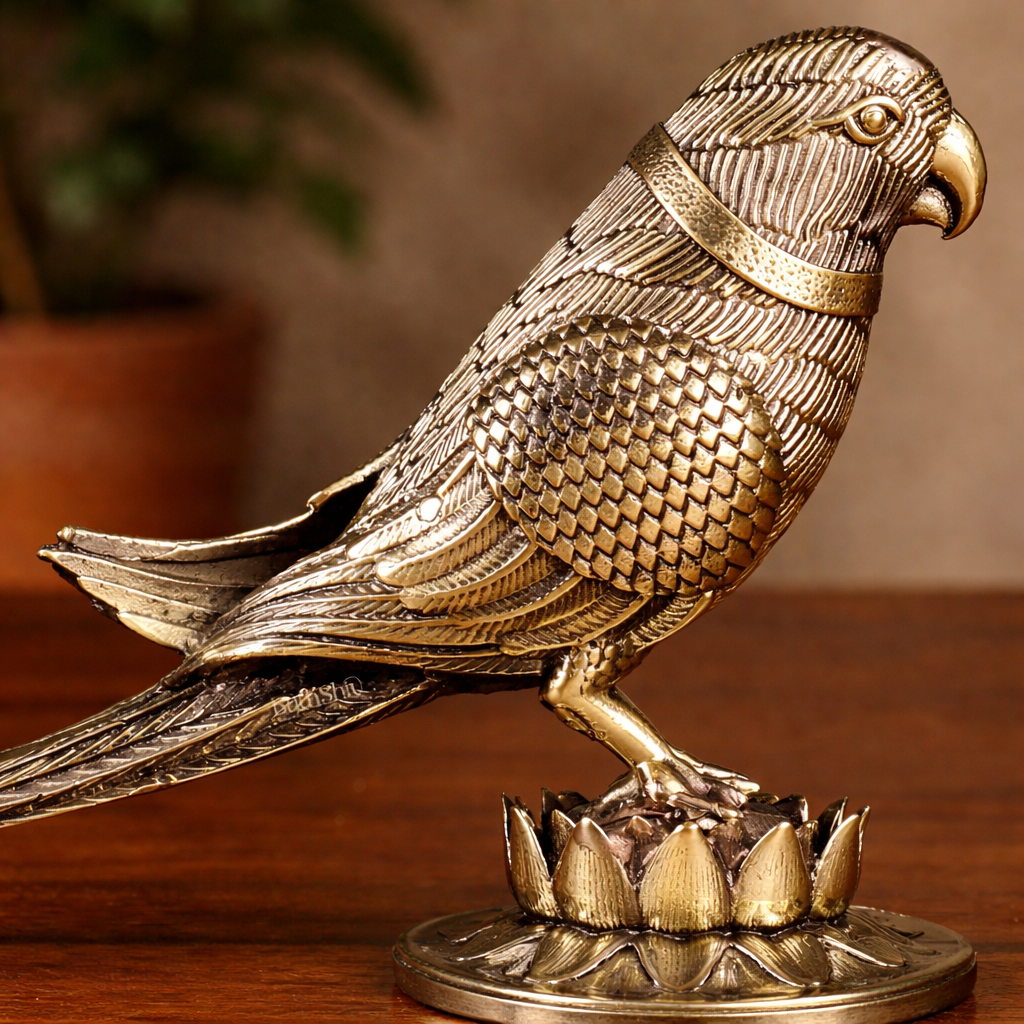 This exquisite artefact is handcrafted from solid brass and features a beautifully detailed parrot design. Its antique finish highlights the fine craftsmanship and gives it a timeless, vintage charm. The parrot, a symbol of wisdom and good fortune, makes this piece not only a decorative accent but also a meaningful addition to your home or office décor.