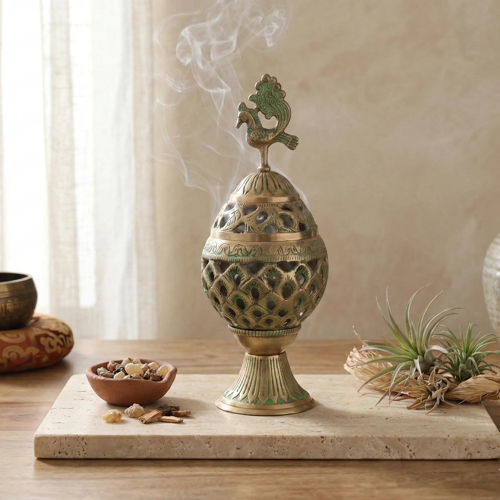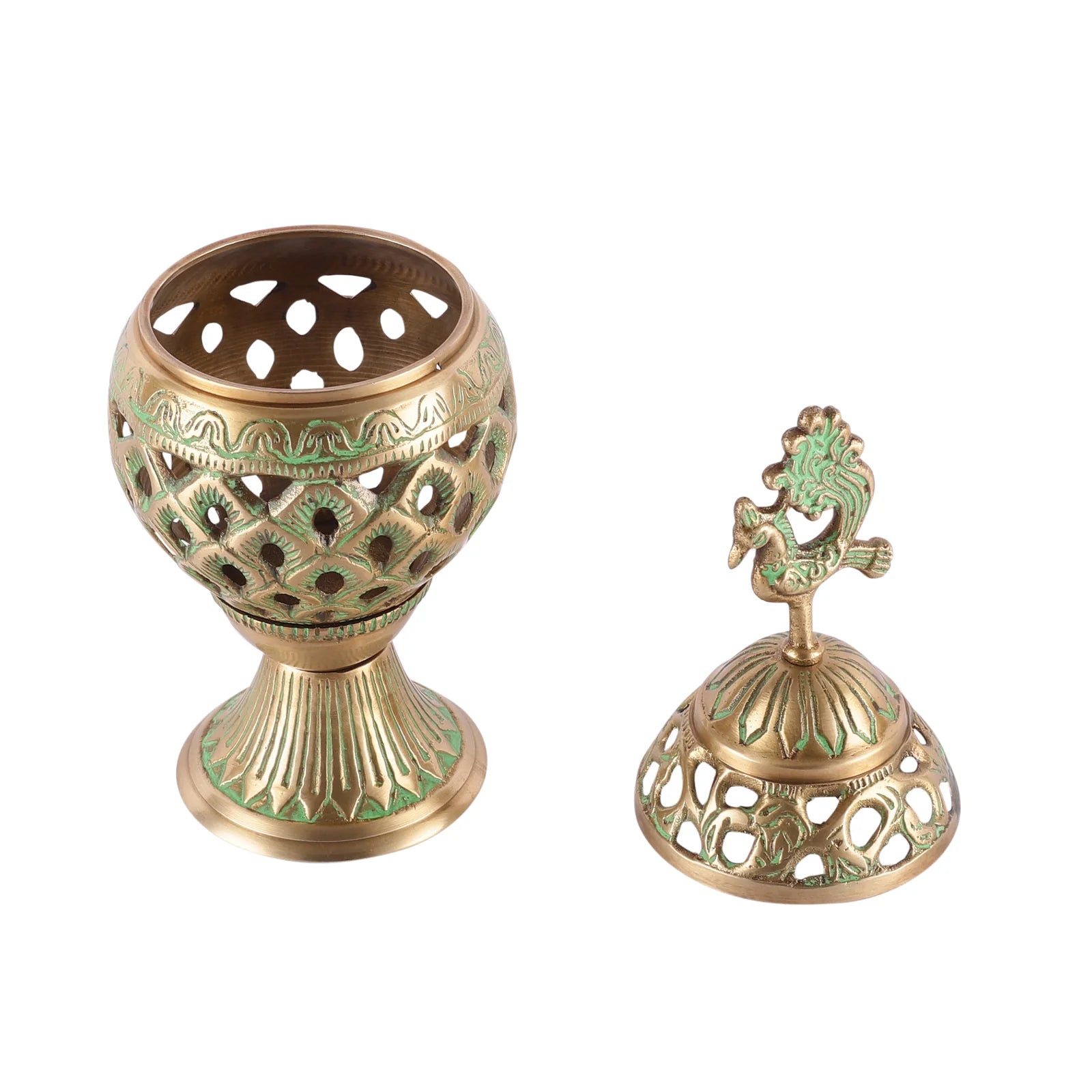 Crafted from high-quality brass, this incense holder is built to last. The brass construction provides a sturdy and durable base that will hold your incense securely in place. The Antique Gold/Green finish adds a touch of sophistication to the holder, making it a perfect addition to any home décor.