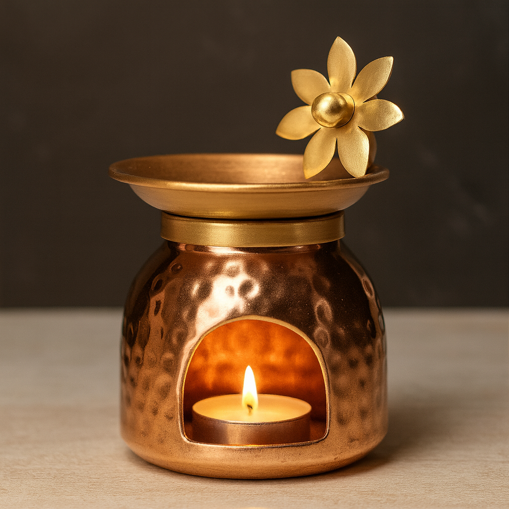 Each flicker of flame beneath the petals releases a soothing symphony of scent and serenity.