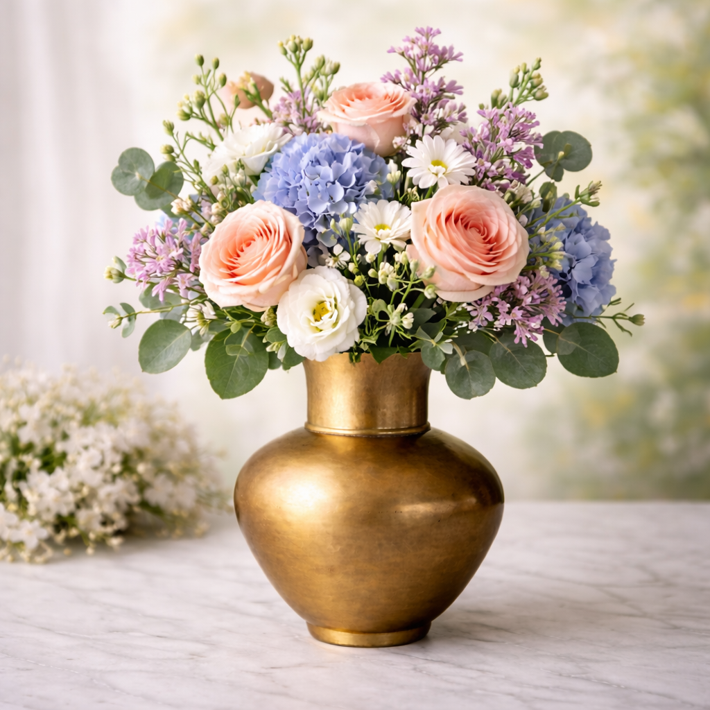 Heritage Brass Vessel Vase is a timeless vintage-inspired brass piece, perfect for holding fresh flowers and adding a warm traditional charm to any space. Its classic rounded form and aged finish make it a beautiful décor accent for pooja corners, festive settings, or everyday styling.